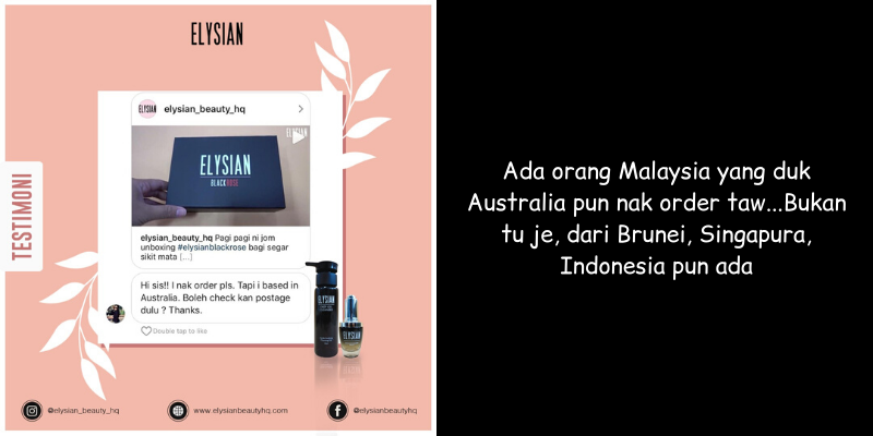 Pelanggan dari Australia, Brunei, Indonesia dan Singapura pun pernah membeli Elysian Advanced Booster Serum.